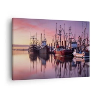 Quadro em tela - Barcos de pesca no porto ao pôr do sol - 70x50cm - Antes do dia seguinte - Decoração de parede moderna para a sala de estar e quarto ARTTOR