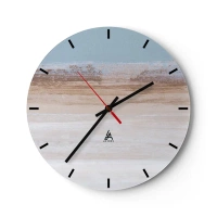 Relógio de parede - Relógio em vidro - Paisagem pastel com listras horizontais de azul e bege. - 30x30cm - Paisagem ambígua - Decoração de parede moderna para a sala de estar, cozinha e quarto ARTTOR