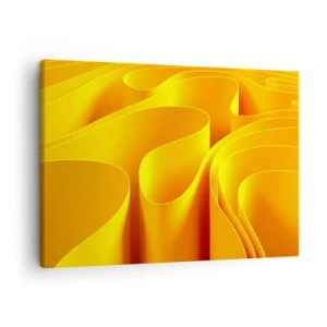 Quadro em tela - Ondas abstratas amarelas que lembram raios de sol - 70x50cm - Como as ondas do sol - Decoração de parede moderna para a sala de estar e quarto ARTTOR