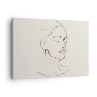Quadro em tela - Um esboço delicado do rosto de uma mulher em um fundo claro - 70x50cm - Uma certa linha - Decoração de parede moderna para a sala de estar e quarto ARTTOR