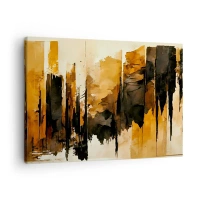 Quadro em tela - Listras abstratas douradas e pretas em uma composição artística - 70x50cm - Harmonia de preto e dourado - Decoração de parede moderna para a sala de estar e quarto ARTTOR