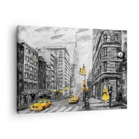 Quadro em tela - Rua de Nova York com detalhes em amarelo - 70x50cm - Um conto de Nova Iorque - Decoração de parede moderna para a sala de estar e quarto ARTTOR
