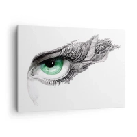 Quadro em tela - Olho artístico com íris verde e detalhes de desenho - 70x50cm - Bonita e pronta para atacar - Decoração de parede moderna para a sala de estar e quarto ARTTOR