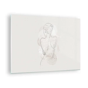 Quadro em vidro - Um esboço delicado de uma mulher em um fundo claro - 70x50cm - Como um instrumento sensível - Decoração de parede moderna para a sala de estar e quarto ARTTOR
