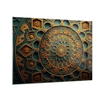 Quadro em vidro - Ornamento de ouro e turquesa no estilo de um mosaico árabe - 70x50cm - Em uma atmosfera árabe - Decoração de parede moderna para a sala de estar e quarto ARTTOR