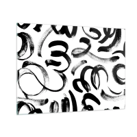 Quadro em vidro - Pinceladas abstratas em preto e branco - 70x50cm - Preto sobre branco - Decoração de parede moderna para a sala de estar e quarto ARTTOR