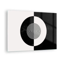 Quadro em vidro - Padrão geométrico de simetria em preto e branco - 70x50cm - Harmonia a preto e branco - Decoração de parede moderna para a sala de estar e quarto ARTTOR