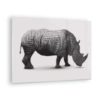 Quadro em vidro - Rinoceronte preto e branco com padrões geométricos - 70x50cm - A beleza geométrica da natureza - Decoração de parede moderna para a sala de estar e quarto ARTTOR