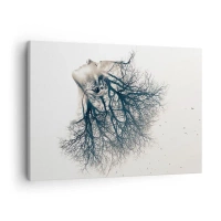 Quadro em tela - Silhueta de uma mulher com um galho e um motivo de pássaro ao fundo - 70x50cm - Espírito da floresta - Decoração de parede moderna para a sala de estar e quarto ARTTOR