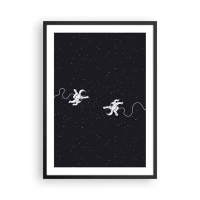 Pôster com moldura preta - Dois astronautas flutuando no espaço - 50x70cm - Emaranhado Cósmico - Decoração de parede moderna para a sala de estar e quarto ARTTOR