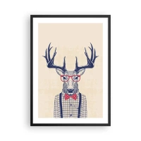 Pôster com moldura preta - Veado estiloso com óculos e gravata borboleta em fundo bege - 50x70cm - Extravagância engraçada - Decoração de parede moderna para a sala de estar e quarto ARTTOR