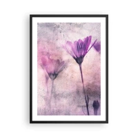 Pôster com moldura preta - Flores delicadas em tons de rosa e roxo sobre fundo claro - 50x70cm - Sonho de flores - Decoração de parede moderna para a sala de estar e quarto ARTTOR
