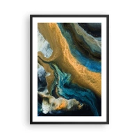 Pôster com moldura preta - Uma composição abstrata em tons de dourado e azul. - 50x70cm - Azul – amarelo – influências mútuas - Decoração de parede moderna para a sala de estar e quarto ARTTOR