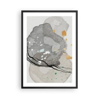 Pôster com moldura preta - Uma composição de formas orgânicas em tons de cinza e dourado. - 50x70cm - Composição orgánica - Decoração de parede moderna para a sala de estar e quarto ARTTOR