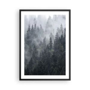 Pôster com moldura preta - Uma floresta enevoada com altas árvores coníferas - 50x70cm - O amanhecer da floresta - Decoração de parede moderna para a sala de estar e quarto ARTTOR