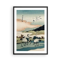 Pôster com moldura preta - Obra de arte tradicional japonesa com guindastes em uma paisagem natural - 50x70cm - No espírito japonês - Decoração de parede moderna para a sala de estar e quarto ARTTOR