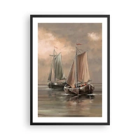 Pôster com moldura preta - Veleiros em mar calmo em tons pastel - 50x70cm - Regresso dos marinheiros - Decoração de parede moderna para a sala de estar e quarto ARTTOR