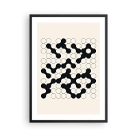 Pôster com moldura preta - Composição geométrica de círculos pretos e brancos - 50x70cm - Jogo chinês – variação - Decoração de parede moderna para a sala de estar e quarto ARTTOR