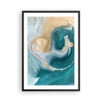 Pôster com moldura preta - Motivo abstrato dourado e turquesa em formas fluidas - 50x70cm - Um vórtice de ouro e turquesa - Decoração de parede moderna para a sala de estar e quarto ARTTOR