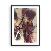 Pôster com moldura preta - Silhueta de uma mulher com uma bicicleta em um fundo artístico e esfumaçado - 50x70cm - Uma alma de bicicleta em formas de mármore - Decoração de parede moderna para a sala de estar e quarto ARTTOR