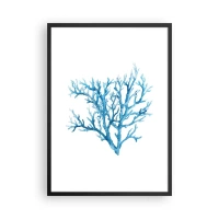 Pôster com moldura preta - Coral azul em estilo aquarela sobre fundo branco - 50x70cm - Filigrana náutica - Decoração de parede moderna para a sala de estar e quarto ARTTOR