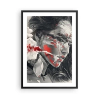 Pôster com moldura preta - Retrato artístico com detalhes em vermelho - 50x70cm - Nos fumos do absurdo - Decoração de parede moderna para a sala de estar e quarto ARTTOR