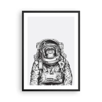 Pôster com moldura preta - Um macaco em um traje espacial em um fundo branco - 50x70cm - Evolução alternativa - Decoração de parede moderna para a sala de estar e quarto ARTTOR