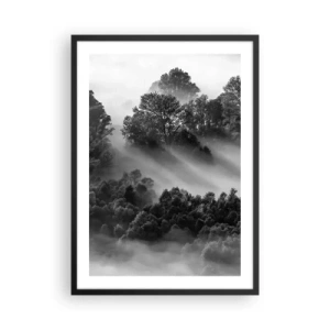 Pôster com moldura preta - Floresta enevoada em tons de preto e branco - 50x70cm - Levantar-se do sono - Decoração de parede moderna para a sala de estar e quarto ARTTOR