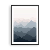 Pôster com moldura preta - Cadeias de montanhas em camadas em tons de azul e cinza - 50x70cm - Ondas de montanha - Decoração de parede moderna para a sala de estar e quarto ARTTOR