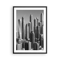 Pôster com moldura preta - Panorama da cidade com arranha-céus modernos - 50x70cm - A cidade sobre o deserto - Decoração de parede moderna para a sala de estar e quarto ARTTOR