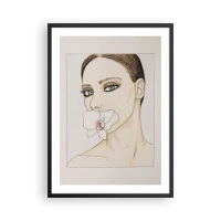 Pôster com moldura preta - Retrato de uma mulher com uma orquídea nos lábios - 50x70cm - Símbolo de elegância e beleza - Decoração de parede moderna para a sala de estar e quarto ARTTOR