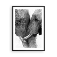Pôster com moldura preta - Foto em close de dois elefantes em preto e branco - 50x70cm - Confissão sincera - Decoração de parede moderna para a sala de estar e quarto ARTTOR