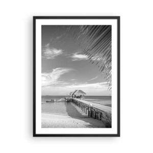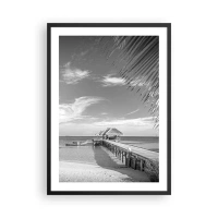 Pôster com moldura preta - Paisagem em preto e branco com um píer sobre um mar calmo - 50x70cm - Memória ou sonho? - Decoração de parede moderna para a sala de estar e quarto ARTTOR