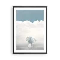 Pôster com moldura preta - Uma figura com um guarda-chuva sentada em uma saliência entre as nuvens - 50x70cm - No limite da realidade e dos sonhos - Decoração de parede moderna para a sala de estar e quarto ARTTOR