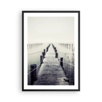 Pôster com moldura preta - Uma ponte de madeira que conduz a uma extensão de água enevoada - 50x70cm - Mergulhe em paz - Decoração de parede moderna para a sala de estar e quarto ARTTOR