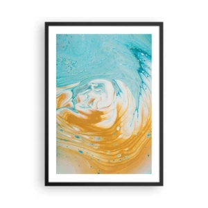 Pôster com moldura preta - Redemoinho abstrato em tons de azul e laranja - 50x70cm - Vórtice em pastel - Decoração de parede moderna para a sala de estar e quarto ARTTOR