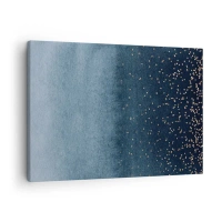 Quadro em tela - Gradientes azuis com sutis detalhes dourados - 70x50cm - Composição – fases azuis - Decoração de parede moderna para a sala de estar e quarto ARTTOR