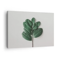 Quadro em tela - Um ramo de folhas verdes em um fundo claro - 70x50cm - Desenho da própria natureza - Decoração de parede moderna para a sala de estar e quarto ARTTOR