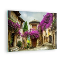 Quadro em vidro - Uma rua pitoresca com flores em vasos - 70x50cm - Nas flores do dilúvio - Decoração de parede moderna para a sala de estar e quarto ARTTOR
