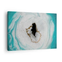 Quadro em tela - Motivo de geodo abstrato em tons de turquesa, branco e dourado - 70x50cm - Penetrar no interior - Decoração de parede moderna para a sala de estar e quarto ARTTOR