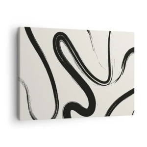 Quadro em tela - Linhas curvas pretas e brancas em um fundo claro - 70x50cm - Capricho preto e branco - Decoração de parede moderna para a sala de estar e quarto ARTTOR