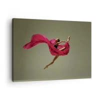 Quadro em tela - Bailarina em pose dinâmica com tecido rosa - 70x50cm - Chama dançante - Decoração de parede moderna para a sala de estar e quarto ARTTOR