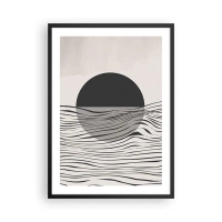 Pôster com moldura preta - Pôr do sol abstrato com linhas de ondas - 50x70cm - Composição da metade - Decoração de parede moderna para a sala de estar e quarto ARTTOR