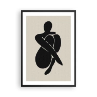 Pôster com moldura preta - Figura abstrata em pose com os braços em volta do corpo, ilustração em preto e branco - 50x70cm - Em seus próprios braços - Decoração de parede moderna para a sala de estar e quarto ARTTOR