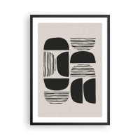Pôster com moldura preta - Composição geométrica abstrata em preto e bege - 50x70cm - Para automontagem - Decoração de parede moderna para a sala de estar e quarto ARTTOR
