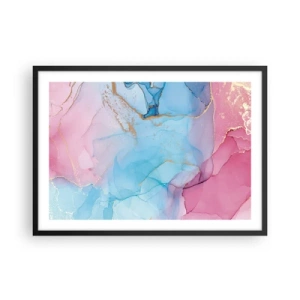Pôster com moldura preta - Derreter a branco e turquesa - 70x50 cm