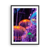 Pôster com moldura preta - Água-viva colorida e futurista em luz neon - 50x70cm - Fonte de luz - Decoração de parede moderna para a sala de estar e quarto ARTTOR