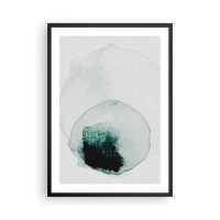 Pôster com moldura preta - Forma orgânica abstrata em tons de verde - 50x70cm - Numa gota d'água - Decoração de parede moderna para a sala de estar e quarto ARTTOR