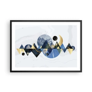 Pôster com moldura preta - A dinâmica do ouro e do azul - 70x50 cm