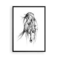 Pôster com moldura preta - Esboço de um cavalo em pose dinâmica - 50x70cm - Num trote gracioso - Decoração de parede moderna para a sala de estar e quarto ARTTOR